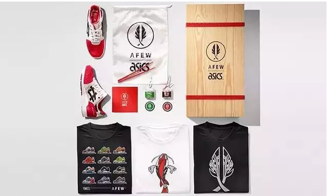 內(nèi)置的白色防塵袋除了聯(lián)名鞋款外,還裝有一雙紅色竹筷及印有設計靈感的小冊子,額外附贈的兩條鞋帶分別裝在芥末瓶與醬油瓶中,拿起筷子可以開吃了。
