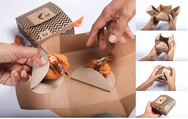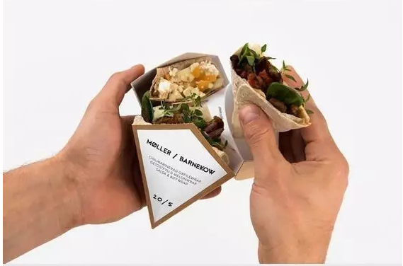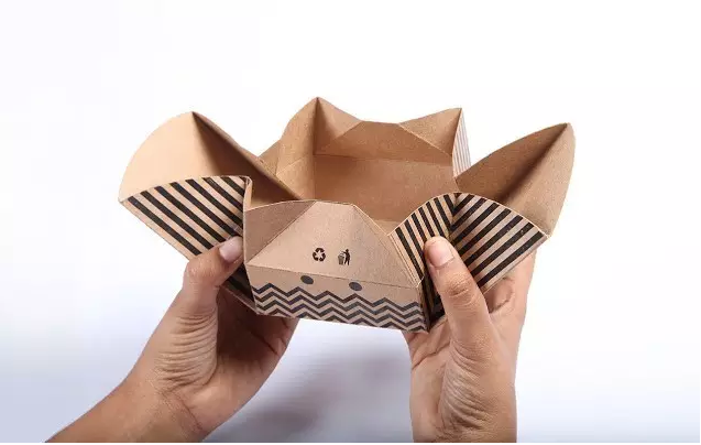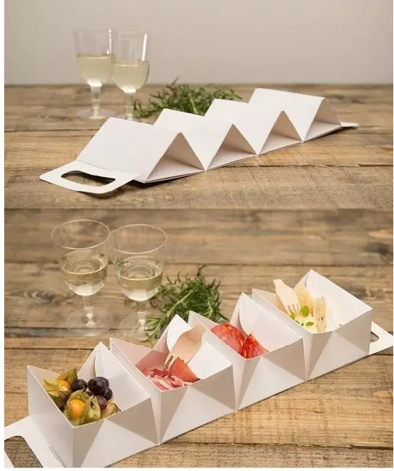 這樣的紙盒包裝對(duì)于吃貨來說簡直是個(gè)福利,對(duì)愛吃的人來說,一次性能吃到多種食物是一件多么幸福的事啊。這紙盒包裝在掰開后有三個(gè)獨(dú)立的小三角,這三個(gè)小三角里可以放不同的食物,簡直不要太方面??!