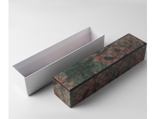 隨著復(fù)古風(fēng)愈演愈烈,連珠寶首飾盒也走起了復(fù)古風(fēng),看這充滿歷史感的花紋圖案,你是不是也會聯(lián)想到里面裝的首飾珠寶也是古香古色的呢?這款首飾盒由藝術(shù)紙制作,采用CMYK四色彩印工藝,制作工藝精良,印刷色彩純正,妥妥的顏值擔(dān)當(dāng)啊~盒子上的圖案雖然繁多,但是在巧妙的配色下卻沒有讓它顯得雜亂,反而顯得莊重、典雅;盒子的底盒為白色的,因?yàn)楹凶由w起來盒蓋會遮住白色的部分,所以說底盒也沒必要印刷些什么了,反正都看不見,還不如省點(diǎn)墨呢。