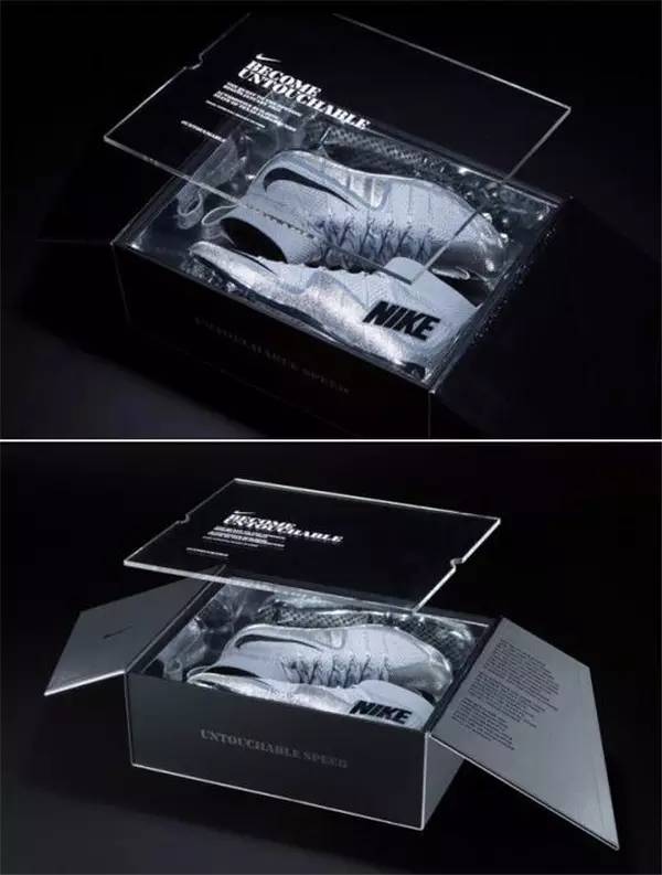 有透明設(shè)計的鞋盒,可以通過透明的包裝設(shè)計部分一覽這鞋子的芳容,看到它完好無損你才會將它收入囊中。
