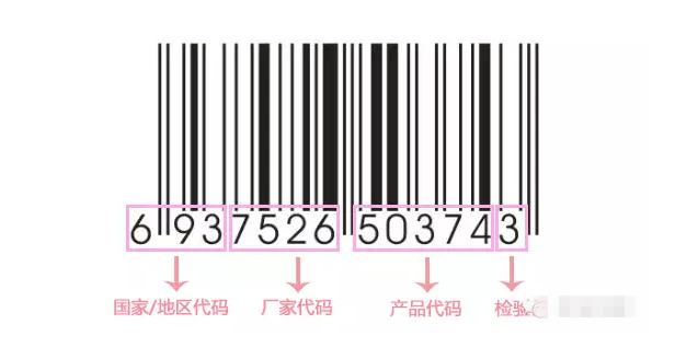 化妝品包裝盒上的13位商品條碼一般分為四個部分,前3位數(shù)字也叫前綴碼,顯示該商品的出產(chǎn)地區(qū)(國家);接著的4位數(shù)字表示所屬廠家的代碼,這是由所在國家(或地區(qū))的編碼機構統(tǒng)一編配給所申請的商號; 再接下來的5位數(shù)是個別產(chǎn)品代碼,由廠家先行將產(chǎn)品分門別類,再逐一編碼;最后一個數(shù)字是校驗碼,以方便掃描器核對整個編碼,避免誤讀。