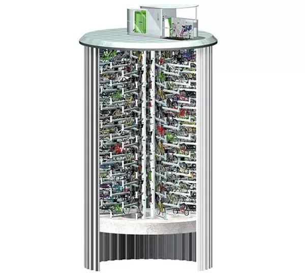 如果你覺得這樣的停車場過于“變態(tài)”,只有日本人才能想出來,那么再來看看其他國家的吧。Biketower也是一個自動化自行車停車系統(tǒng),占地只有30平方米,位于德國梅肯博伊倫火車站外,可存放112輛自行車,且利用太陽能作為動力能源。