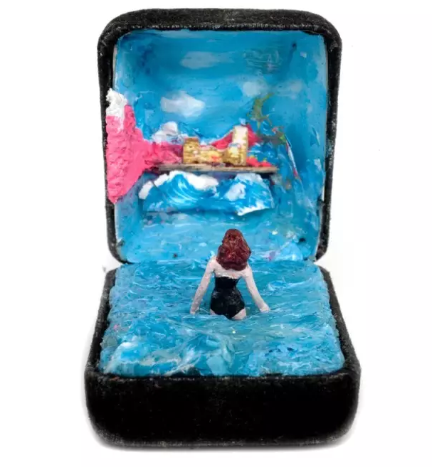 這是一位名叫Curtis Talwst Santiago 的藝術(shù)家的杰作,Talwst開(kāi)始藝術(shù)創(chuàng)作是在2008年,那時(shí)他還是一位前途可期的音樂(lè)人,只是閑暇時(shí)會(huì)用繪畫和雕塑來(lái)抵抗溫哥華多雨的憂郁。一天,一個(gè)他經(jīng)常光顧的路邊小販拿出一個(gè)小首飾盒,想看Talwst能用它做點(diǎn)什么出來(lái)。打開(kāi)這個(gè)首飾盒,讓Talwst實(shí)現(xiàn)了真正的跨界,他在首飾盒里繪制的微縮立體模型在藝術(shù)舞臺(tái)上獨(dú)放異彩。