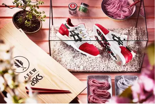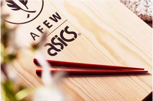 內(nèi)置的白色防塵袋除了聯(lián)名鞋款外,還裝有一雙紅色竹筷及印有設計靈感的小冊子,額外附贈的兩條鞋帶分別裝在芥末瓶與醬油瓶中,拿起筷子可以開吃了。