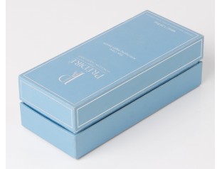 化妝品圍邊禮盒采用157g銅版紙裱1000g灰板,單色印刷,商標(biāo)燙銀,圍邊用銀光紙裱灰板。化妝品盒整體采用淺藍(lán)色作為紙盒主打色,加上銀色LOGO和盒邊白色的邊沿線搭配,清新,簡約。化妝品盒包裝設(shè)計(jì)采用成型的EVA內(nèi)托,與產(chǎn)品完全吻合,固定產(chǎn)品起到起到緩沖的作用。