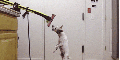 8、美國(guó)一位Youtube上的紅人,也是腦洞頗大,設(shè)計(jì)這款自動(dòng)切菜神器。只是心疼了汪,跳了半天,也沒(méi)吃上一口肉肉。狗狗此時(shí)的內(nèi)心獨(dú)白應(yīng)該是:鏟屎的,你沒(méi)事把肉掛那么高干嘛?老子跳半天也沒(méi)吃上一口,等下我心情不好了就會(huì)想拆家的哦!嗯,小編這狗語(yǔ)十級(jí),掌聲鼓勵(lì)。
