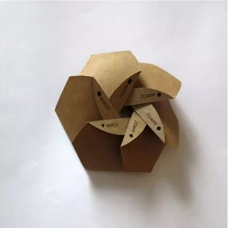這樣的紙盒包裝對(duì)于吃貨來說簡直是個(gè)福利,對(duì)愛吃的人來說,一次性能吃到多種食物是一件多么幸福的事啊。這紙盒包裝在掰開后有三個(gè)獨(dú)立的小三角,這三個(gè)小三角里可以放不同的食物,簡直不要太方面??!