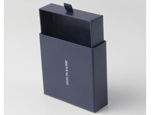 這紙盒子咋一看是黑色的,但認真瞧一瞧之后發(fā)現(xiàn)其實它是寶藍色,盒子表面特殊的花紋處理使盒子變得有質(zhì)感且神秘優(yōu)雅;即使是覆的啞膜,也沒有過多的圖文點綴,但就這么簡簡單單的紙質(zhì)禮品盒也能給人一種端莊而不失優(yōu)雅的感覺;抽屜盒盒型讓盒子更顯精致,也方便禮品的存取,不用擔心會傷到禮品;盒子內(nèi)部也做了啞膜處理更加的精致,也說明了駿業(yè)包裝做的盒子不止做便面功夫,里面的細節(jié)也不馬虎。