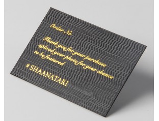 此吊牌選用的材質(zhì)是黑卡紙,而黑卡紙的特點(diǎn)為PH為中性,環(huán)保染料,百分百可回收處理,無污染,兩面顏色無色差,中間夾心部分顏色也是黑色,由商品原木漿制作,超高挺度,完美平滑度和平整度,所以黑卡紙吊牌做出來很有質(zhì)感,顯得高大上。吊牌正面采用燙金加凹印工藝,是利用熱壓轉(zhuǎn)移的原理,將電化鋁中的鋁層轉(zhuǎn)印到承印物表面以形成特殊的金屬效果,金光閃閃的吊牌想要不惹人注目都不行了,凹印工藝增添了吊牌的質(zhì)感。而吊牌的背面采用的工藝則是燙金加擊凸,燙金字體的擊凸感加上吊牌本身的紋路,這增加了吊牌觸感的好感度。