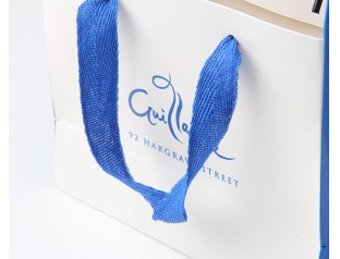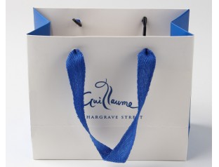 這款t恤紙袋的袋身給人方正大氣,但又不缺少流線圓潤的元素,藍(lán)、白相間的顏色搭配給人渾然一體的感覺。t恤本來就給人以一種青春活力之感,用來包裝它的t恤紙袋當(dāng)然也要是青春靚麗的啦,而藍(lán)色和白色就是活力慢慢的顏色。紙袋的文字logo設(shè)計(jì)讓它有了一絲調(diào)皮感。簡(jiǎn)約的設(shè)計(jì)使得t恤紙袋就像個(gè)超凡脫俗的精靈,大氣又不失清新,客人見到無不駐足欣賞。