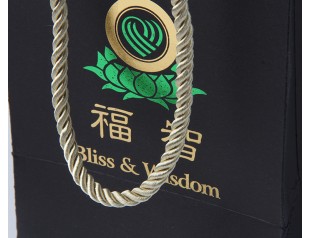 這款首飾紙袋使用原漿紙為主要材料,盒子表面logo使用精美的燙金工藝,凸顯品牌質感。紙袋表面圖案使用CMYK四色彩印工藝,圖案清晰顏色妍麗;拎手處打孔打結處理,更加牢固。廣州駿業(yè)包裝作為一家專業(yè)的手提袋廠家,自主設計,研發(fā),生產,銷售高檔包裝,歡迎您前來定制。