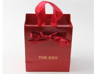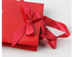 紅色在中國算是最受歡迎的顏色了,代表著喜慶、大氣,有留意的話會(huì)發(fā)現(xiàn),很多中國的珠寶商都喜歡用紅色來做珠寶的包裝、陪襯,紅色的珠寶首飾紙袋當(dāng)然也少不了。這款禮品紙袋使用雙銅紙為主要材料,袋子表面logo使用精美的燙金工藝,凸顯品牌質(zhì)感;拎手選用了絲帶,這個(gè)袋子的手拎特別有意思,不是跟其他的紙袋那樣打結(jié)或者這膠封,而是采用在外面打蝴蝶結(jié)的方式,不僅固定住了拎手,而且還裝飾了紙袋,一舉兩得。袋身由紅色專色印刷而成,做工精細(xì),印刷精美,尺寸可按需求定制。