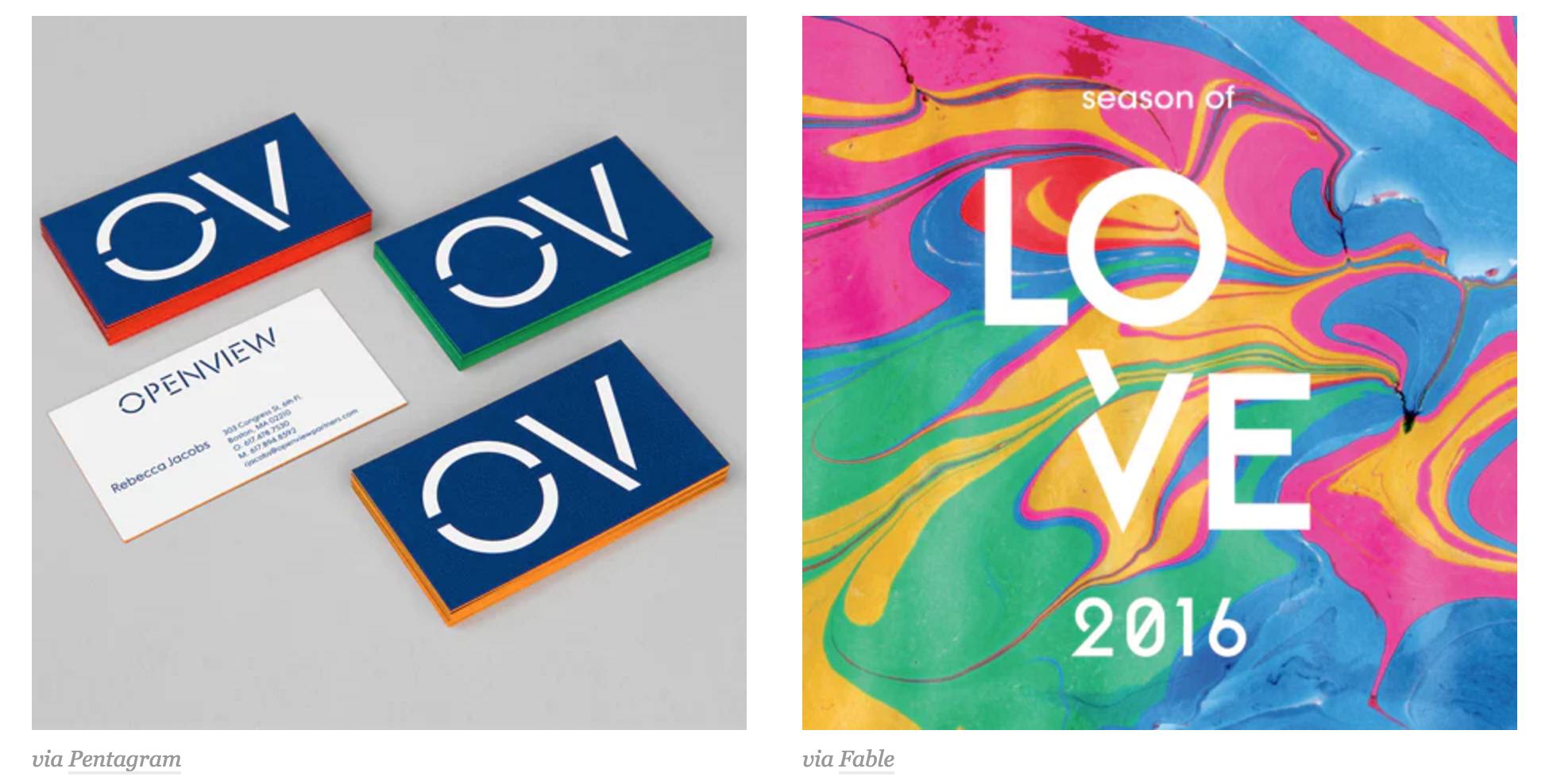 Chase在其Blinkbox的標(biāo)志中創(chuàng)建了一個(gè)可識(shí)別的藍(lán)色廣告。 DIA為T(mén)omorrow International開(kāi)發(fā)了一款有趣的雙色調(diào)調(diào)色板,Hey Studio設(shè)計(jì)了色彩明亮、飽和的,非常令人難忘的彩虹。