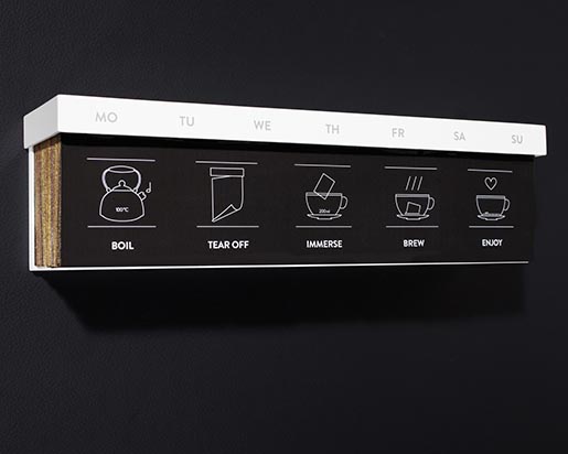 德國茶商Haelssen and Lyon的創(chuàng)意,日歷茶(Tea Cal ar),直接將茶葉處理、壓制成了薄片,上面用可食用的材料印上日期,做成一年的日歷,每天撕下一片來,直接放入開水里就能泡成茶,非常方便又具備時間流逝感讓喝茶的時候能更好的感受和珍惜時間的更迭。可以喝的包裝設(shè)計,很是節(jié)能環(huán)保哦~