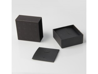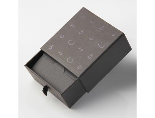 此款首飾包裝盒,采用了常見的開合型翻蓋盒的款式,材質是pu皮包膠胚,商標燙銀。首飾盒包裝整體用黑色作為底色,醒目的銀色LOGO位于盒子中心,黑白搭配,變得更加簡單和樸素首飾盒選用植絨裱EVA內(nèi)托在保護好產(chǎn)品的同時,也彰顯其高檔大方。