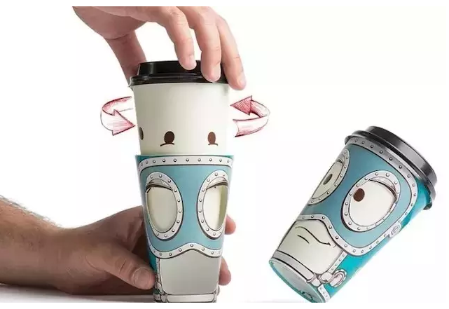 有趣的產(chǎn)品包裝設(shè)計,可以為消費者在產(chǎn)品使用之前或使用的過程中,增加一些互動體驗。這一招很奏效,能直接為消費者的產(chǎn)品體驗加分。比如亞美尼亞的設(shè)計工作室 Backbone Branding,為當(dāng)?shù)氐?Gawatt 餐廳設(shè)計的這款咖啡杯。盡管乍一眼看上去非常普通,但是當(dāng)你轉(zhuǎn)動杯蓋的時候,杯身上卡通人物的表情就會開始變化。設(shè)計師在每個杯子上都內(nèi)設(shè)了三款表情,消費者可以轉(zhuǎn)動杯子本身或者外層的杯套,來改變卡通人物的表情。來這樣一杯咖啡小編可以玩上一天!