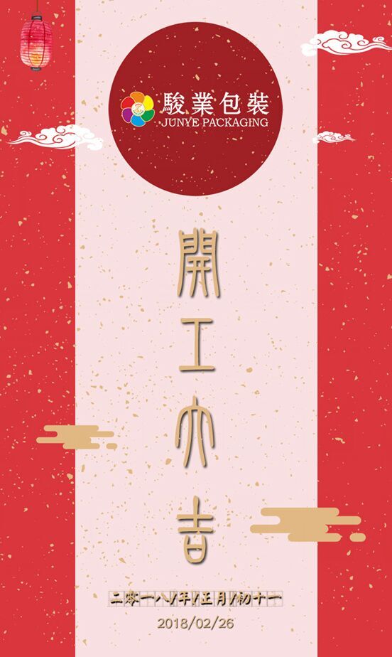 廣州駿業(yè)包裝盒廠家祝各位客戶、朋友,新年開(kāi)工大吉,給大家拜晚年,希望在接下來(lái)的2018各位都豬籠入水,身體健康。2018年歡迎新老客戶的合作,共同雙贏。