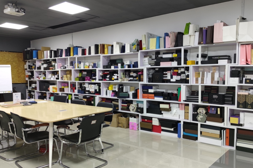 駿業(yè)包裝廠樣品陳列室,專為客戶蒞臨參觀而設(shè)。在這里,擺放著種類繁多的包裝盒、手提袋、吊牌等樣品,客戶可以進(jìn)行現(xiàn)場考察或洽談設(shè)計(jì)方案。