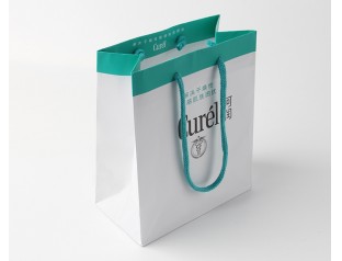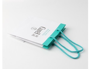 此款禮品包裝紙袋采用250g單銅紙,雙色印刷,過(guò)啞膠,自扣尼龍圓繩手提紙袋設(shè)計(jì)走小清新的風(fēng)格,整體采用白色作為主打色,搭配天藍(lán)色紙袋設(shè)計(jì)的提手處選用了天藍(lán)色的尼龍圓繩,小清新的白色和藍(lán)色搭配是藍(lán)天白云這樣一對(duì)經(jīng)典的組合,給人舒心的感覺(jué)