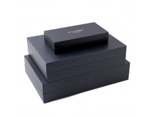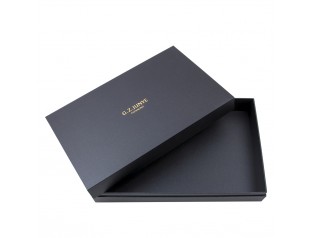 此款皮具包裝盒,表面那磨砂質(zhì)感的碳黑平面面紙,就知道此包裝是專門為英國產(chǎn)品包裝的。皮具包裝盒,堅硬厚實(shí),表面平滑磨砂質(zhì)感,光澤靚麗,產(chǎn)品價值檔次瞬間大升。