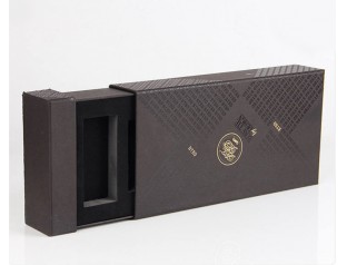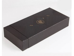 這個禮品盒定制選用的材質(zhì)是1000可白板紙為內(nèi)紙,裱紙則是雙銅紙,盒型是抽屜盒,盒身覆啞膠,看起來高貴神秘;可以看到這個禮品盒的表面布滿了用uv印刷出來的文字,在不同的角度可以看到不一樣的效果,這也是防偽的一種方法;盒子的logo采用的是燙金工藝,金燦燦的字體往往能讓人印象深刻,同時也凸顯了品牌質(zhì)感。