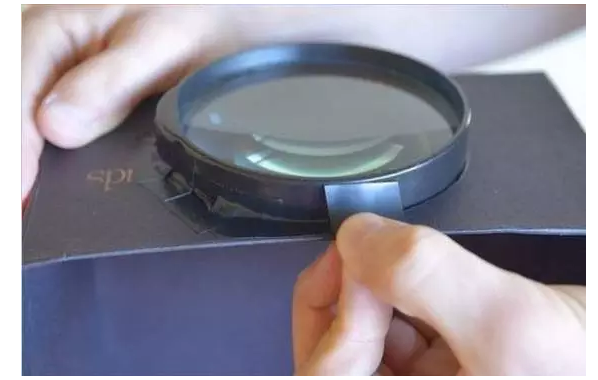 將放大鏡放進劃好的圓洞里,用黑膠帶粘牢固定
