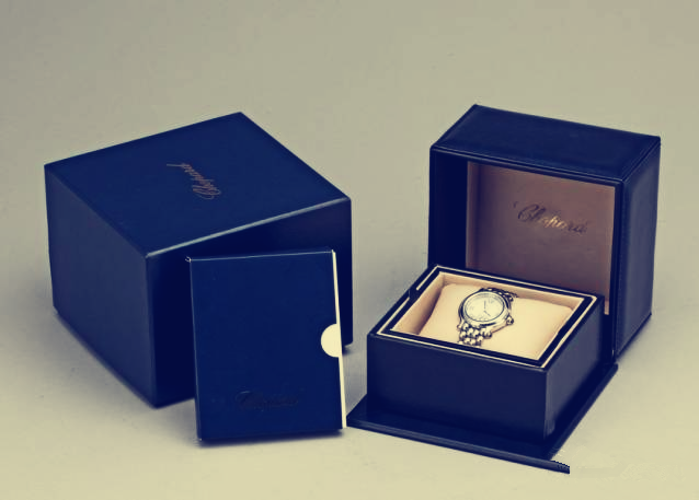第一種:手表包裝盒,也是最低檔的一種。一般用的就是白色單粉卡紙,或說灰卡紙,以及牛皮紙。以卡盒,或說彩盒的形式,給手表進行簡單的包裝。稍微有點要求的,會在盒子的表面印上手表的圖案與生產廠家。對包裝,沒有特別的要求,對包裝的成本,通常要求最低化,不求包裝質量。也不用包裝盒的促銷功能!這樣的手表包裝盒一般都是用在買一贈一的這種模式,不知道大家還記得小時候買書包時送的手表嗎?用的就是這種手表包裝盒。
