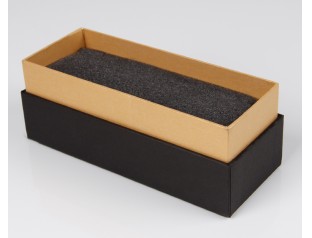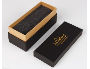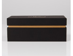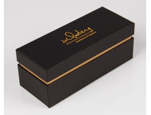 帶圍邊天地蓋禮品包裝盒,采用特種紙裱1000g灰板紙,商標燙金禮品盒內(nèi)盒采用復合海綿內(nèi)托,手感細膩,具有較強的回彈性,持久使用不易變形禮品盒包裝設計,選擇黑色作為盒身的底色,醒目的金色LOGO居中,高檔大方。